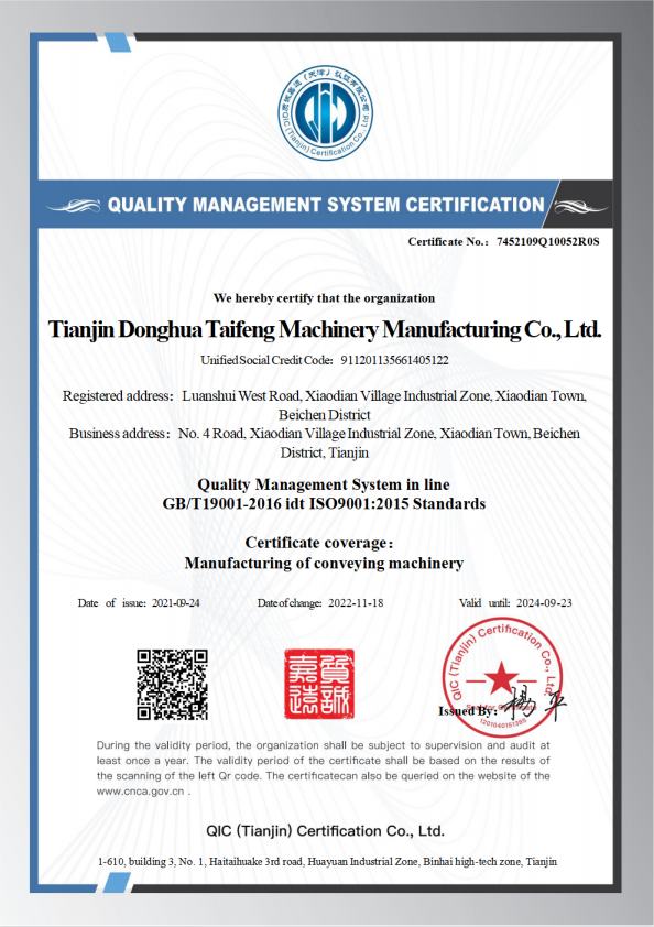 天津東華泰豐機(jī)械制造有限公司是經(jīng)驗(yàn)豐富生產(chǎn)皮帶輸送機(jī),網(wǎng)帶輸送機(jī),鏈板輸送機(jī)等各類輸送機(jī)和非標(biāo)自動(dòng)化設(shè)備以及各種機(jī)床部件產(chǎn)品研發(fā)、銷售于一體的股份制公司。我公司擁有先進(jìn)的生產(chǎn)設(shè)備和科技力量。豐富的生產(chǎn)經(jīng)驗(yàn)和嚴(yán)格的質(zhì)量管理體系。